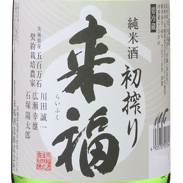 精米も出来る限り自社精米をしており、酵母もほとんどが自社培養しており、いい米が良い麹を造り、いい酵母とミックスされ来福酒造の製品が完成していきます。品質一本、真向勝負を経営理念に、伝統技術を駆使して磨き重ねた商品の数々を、お飲みになるお客様のもとに福が来ますようにと願い造られています。