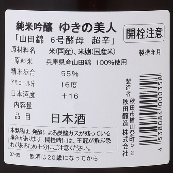 ゆきの美人 超辛 純米吟醸 山田錦 6号酵母