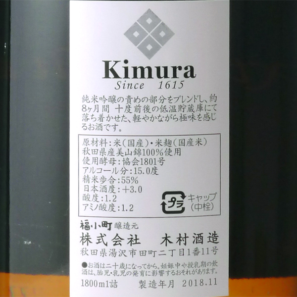 様々な鑑評会、IWC等で優秀な成績をおさめる福小町を醸す木村酒造より、特約店限定流通の角右衛門の登場です。美山錦を55%精米。搾りの責めの部分をブレンドし、数ヶ月低温貯蔵庫にて落ち着かせた、軽やかながら極味を感じる1本。蔵紹介