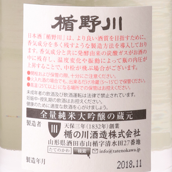 楯野川 純米大吟醸 初槽生
