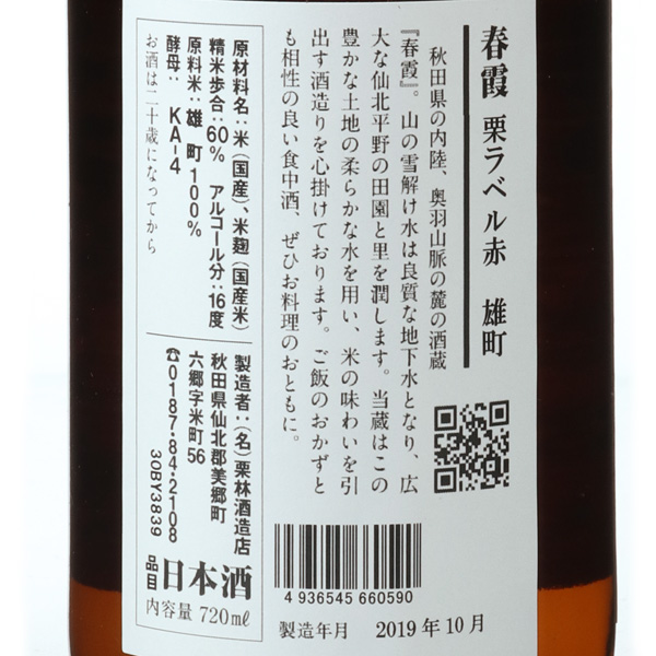雄町米を使い醸した食中タイプの秋バージョンの春霞です。じわっとあふれる旨味と酸による適度な余韻が心地よい、バランスに優れた純米酒に仕上がりました。お野菜を使った煮付けなどと好相性の、食中純米酒。蔵紹介