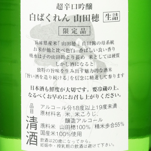 ご好評いただいております「ばくれんシリーズ」。白ばくれんは山田錦の母親にあたる山田穂を使い、小川酵母で醸しています。吟醸辛口でありながら、旨味もしっかり感じ、深い味わいにほんのりとした甘さが魅力的な1本に仕上がっています。蔵紹介