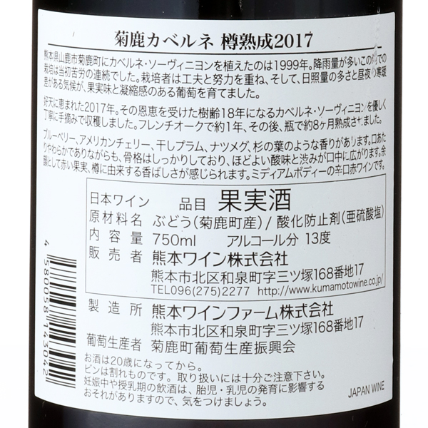 菊鹿 カベルネ樽熟成 2017 / 熊本ワインファーム