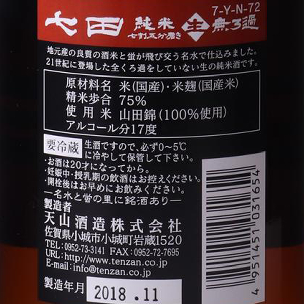 生のまま熟成、フレッシュ感を上手に残しています。華やかでジューシー。七田らしく綺麗なコクと、たっぷりとした味わいです。蔵紹介
