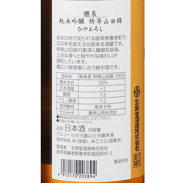 醴泉 純米吟醸 山田錦 ひやおろし