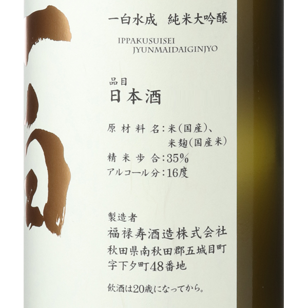 「愉しい酒」づくりを目指して江戸・元禄元年、1688年創業。楽しいとは違う、飲んでいただく方に心から愉しんでいただきたいという思いと蔵人たちが心から愉しんで酒造りをしている想いを大切にしています。地の「米」地の「水」地の「人」をモットーに秋田県五城目の土地を表現することを目指しています。2006年よりスタートした限定流通銘柄「一白水成」は "白い米と水から成る、一番旨い酒”という意味。上品な香り、爽やかな酸、キレの良さが特徴でその洗練された味わいは全国から高い評価を得ています。