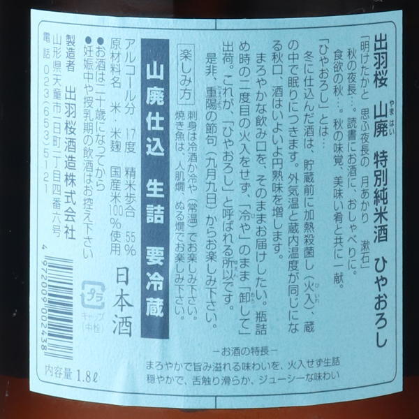 出羽桜 山廃 特別純米 ひやおろし