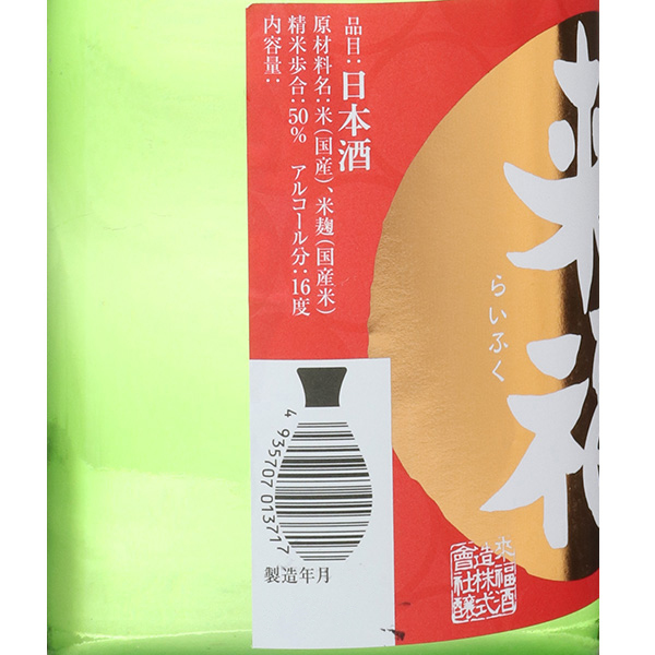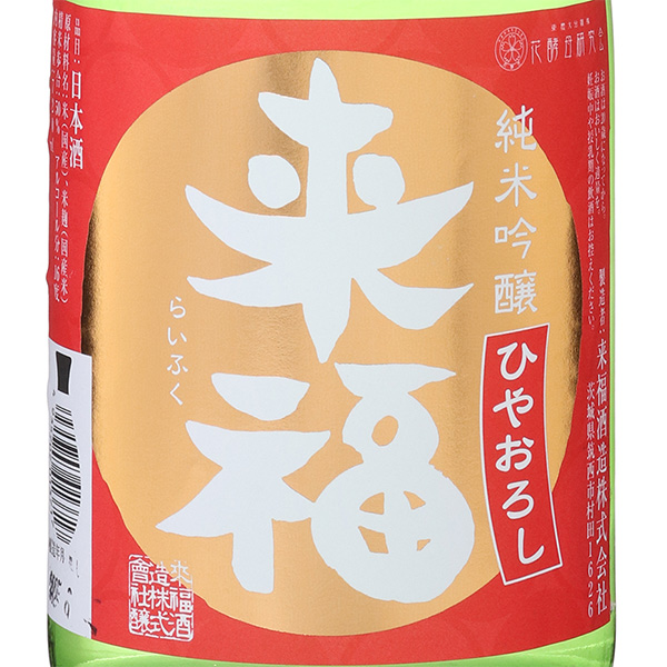 精米も出来る限り自社精米をしており、酵母もほとんどが自社培養しており、いい米が良い麹を造り、いい酵母とミックスされ来福酒造の製品が完成していきます。品質一本、真向勝負を経営理念に、伝統技術を駆使して磨き重ねた商品の数々を、お飲みになるお客様のもとに福が来ますようにと願い造られています。