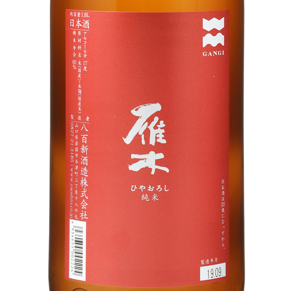 冬の仕込みからひと夏越え、程よい熟成を遂げたひやおろしが入荷しました。完熟の果実のようにボリュームたっぷりの旨味の後に心地よい酸味が口中をスッキリとさせてくれます。冷やしすぎよりは常温に戻して味わっていただくと雁木ならではのまろやかで幅のある味わいがより良く伝わります。また、お燗にすると益々味が冴えます。焼き鳥ならば たれ で。秋刀魚の塩焼き、マツタケ、栗の渋川煮等、秋の恵みと共にお楽しみください。蔵紹介