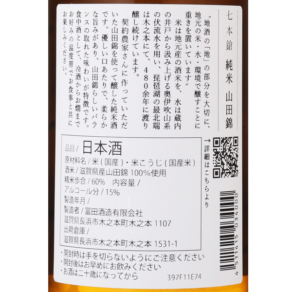 現蔵元、十五代冨田泰伸さんは酒造りの修行に入る前、アメリカ、ヨーロッパ各地のワイナリーや蒸留所を巡った際に、地酒であることの意味やその価値について深く考えるようになりました。その経験を活かし、地元篤農家との契約栽培をベースに、玉栄や吟吹雪そして渡船といった酒米を中心とした、地元の米と水による本当の意味での地酒造りに取り組んでいます。また、完全無農薬米による酒造りや熟成酒にも挑戦し愛飲家の注目を集めています。骨太な味わいの中に、豊かな自然の滋味や深味が溢れ、どこか懐かしさも感じさせる七本鎗をぜひ味わってみてください。