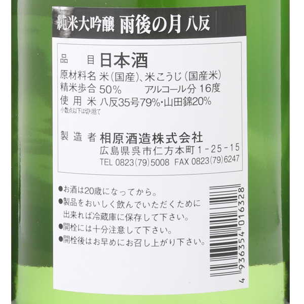 大吟醸造り、全品冷蔵保存、最上の原料で醸すことを掲げ、どうすれば美味しいかを常に考えています。そんな蔵元の代表銘柄雨後の月はとうふ、天ぷらを塩、白魚の焼き物などさっぱりした料理にあわせやすいとのこと。その時の季節に合わせて、雨後の月を楽しんでください。