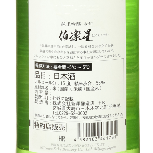 伯楽星 純米吟醸 冷卸