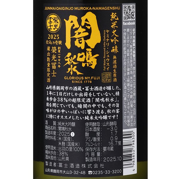 栄光冨士 闇鳴秋水 純米大吟醸 無濾過生原酒