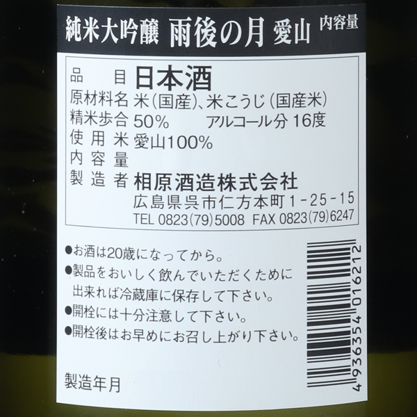 大吟醸造り、全品冷蔵保存、最上の原料で醸すことを掲げ、どうすれば美味しいかを常に考えています。そんな蔵元の代表銘柄雨後の月はとうふ、天ぷらを塩、白魚の焼き物などさっぱりした料理にあわせやすいとのこと。その時の季節に合わせて、雨後の月を楽しんでください。
