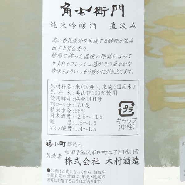 様々な鑑評会、IWC等で優秀な成績をおさめる福小町を醸す木村酒造より、特約店限定流通の角右衛門。フレッシュな果実香に、ぴちぴちとしたガス感があり、豊かな香りと爽快感が楽しめます。蔵紹介