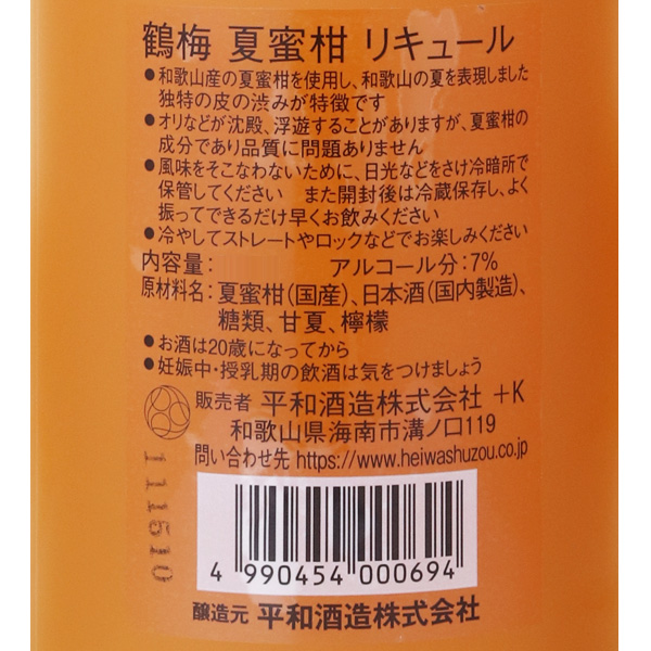 和歌山県産の夏蜜柑を中心に甘夏、檸檬果汁をたっぷりとブレンドしています。夏らしい爽やかな酸味と和歌山の太陽の恵みを表現しました。皮ごと圧搾していますので独特の皮の渋みが特徴です。冷やしてストレートやロック、炭酸割りなどでお楽しみください。蔵紹介