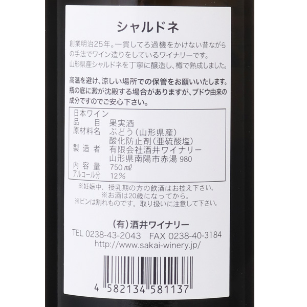 シャルドネ 2020 2021 / 酒井ワイナリー