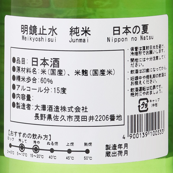 毎年好評の日本の夏らしい情景のラベル、昭和レトロシリーズです。爽やかで淡い癒し系純米酒。サラリとした味わいの中にも米の旨味を感じていただける仕上がりです。しっかりと冷やした時にもおいしく楽しめるようすっきりと仕上げました。軽快でフレッシュなリンゴの香りが広がり、口当たりに軽快な甘味とフレッシュですっきりとした酸のある爽快な味わいです。蔵紹介