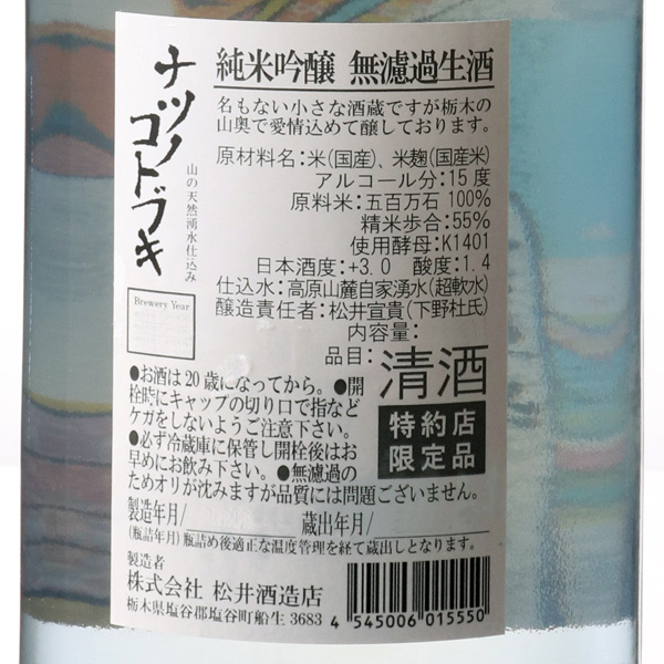 ナツノコトブキ 純米吟醸 五百万石 無濾過生