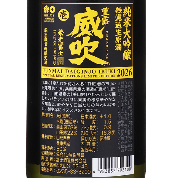 栄光冨士 菫露 威吹 スミレツユ イブキ 純米大吟醸 無濾過生原酒