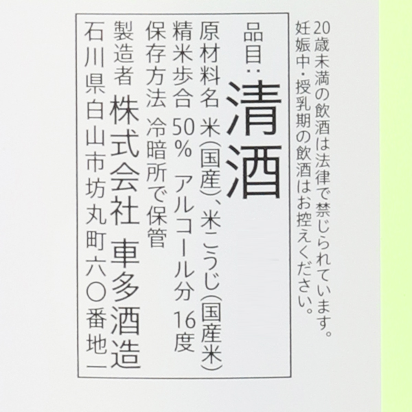 八百万の一滴車多酒造は文政6年、1823年創業。霊峰白山を望む加賀平野、白山から湧き出る清らかな伏流水と加賀平野に実った良米、手造りにこだわり、天狗舞では多くの日本酒を山廃仕込で醸しています。七代当主の車多壽郎と杜氏の中三郎が心血を注いで築き上げた天狗舞流の山廃仕込、その伝統を引き継ぎ毎年細かな改良を重ねて現在に至っています。天狗舞が追い求めているのは飲んで旨い酒を熟練の蔵人が醸す、本物の酒造りの伝承です。ただ単に教わるだけでなく、技を盗み、守り、壊し、新しい伝統を若手に創ってほしいと願い育てています。過去から現在へと継いできた技を、そして酒造りの喜びを次代へ継承し、白山の地で絶えず酒造りを繋いでいます。