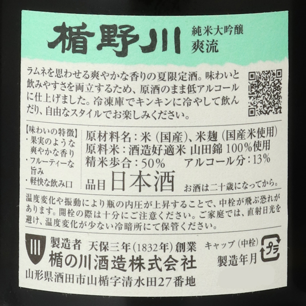 山田錦を使いボリューミーな甘味や旨味を引き出しながらも13度という低アルコールにする事で軽快ですっきりとした夏酒に仕上げました。ラムネを想わせる様なフレッシュな香りは夏の暑さを吹き飛ばしてくれるかのような爽快感があり、よく冷やして飲むことで火照った体をクールダウンさせてくれます。お酒単体ではもちろん、アユの塩焼きや夏野菜と合わせてお楽しみください。蔵紹介