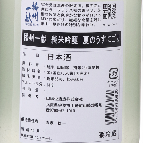 播州一献 純米吟醸 夏のうすにごり 生 *クール便のみ