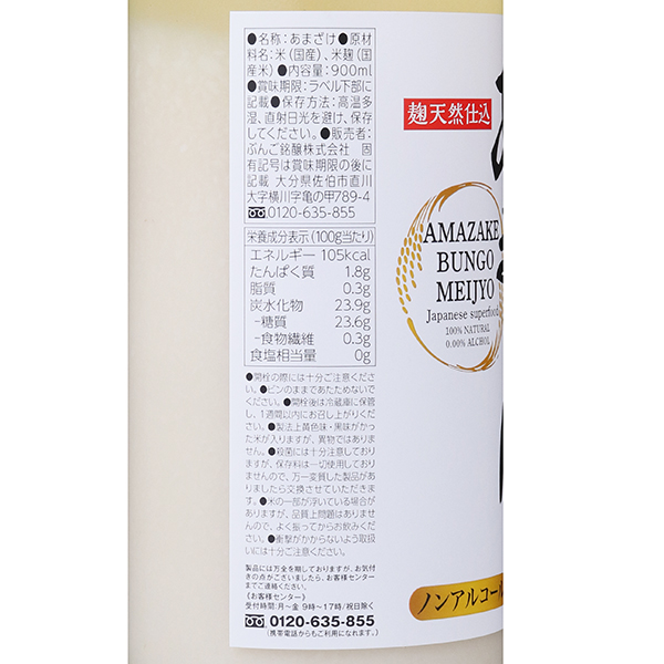大分県ぶんご銘醸が、酒蔵の麹造りの技術を駆使し造りました。米と米麹のみから造られていますが、しっかりとした甘さと飲み応えを感じます。注意事項