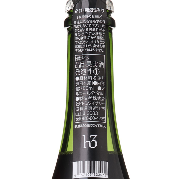 ヒトミワイナリーの代表的な定番商品です。ヒトミワイナリーでは山形県、岩手県、長野県、山梨県など、日本各地の農家さんにブドウを生産していただいています。h3シリーズでは様々な土地の個性を持つブドウを組み合わせ、数ある商品のなかでも特に色濃くヒトミらしい表現を反映させることを意識しています。自然で素朴な泡が特徴の田舎式微発泡ワイン。発酵によって瓶底に沈殿する酵母や酒石酸を除去せずに、そのまま瓶内に残しています。ドライで柔軟な味わいなので、様々な料理との組み合わせをぜひお楽しみください。【 醸造人からの特徴コメント 】