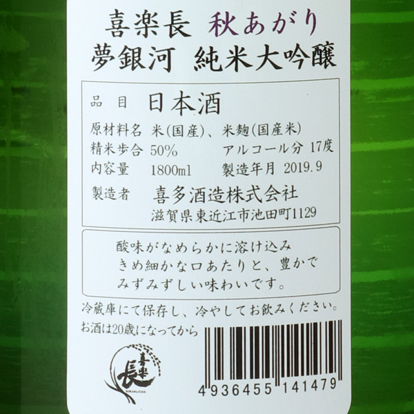 喜楽長 夢銀河 純米大吟醸 秋あがり