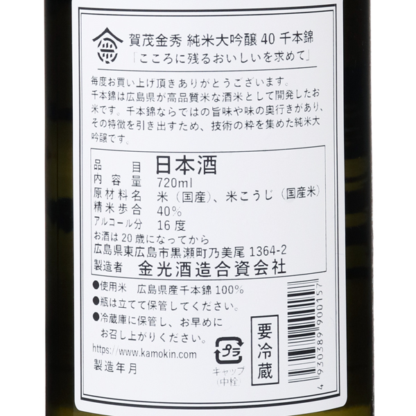 広島県産千本錦を40%精米しました。千本錦の特徴を最大限に活かしエレガントなお酒に仕上がっています。華やな香りと上品な甘味、透明感ある酸のバランスがよく、すっきりとしながらも存在感がしっかり残る逸品です。受賞歴